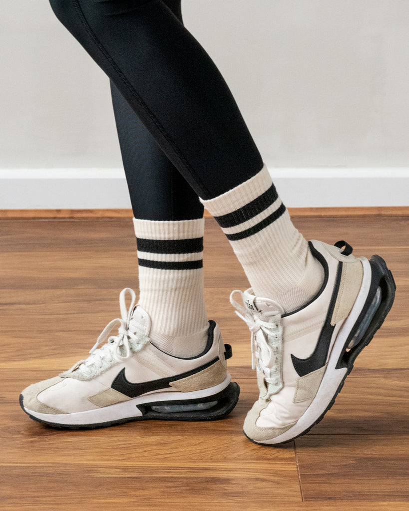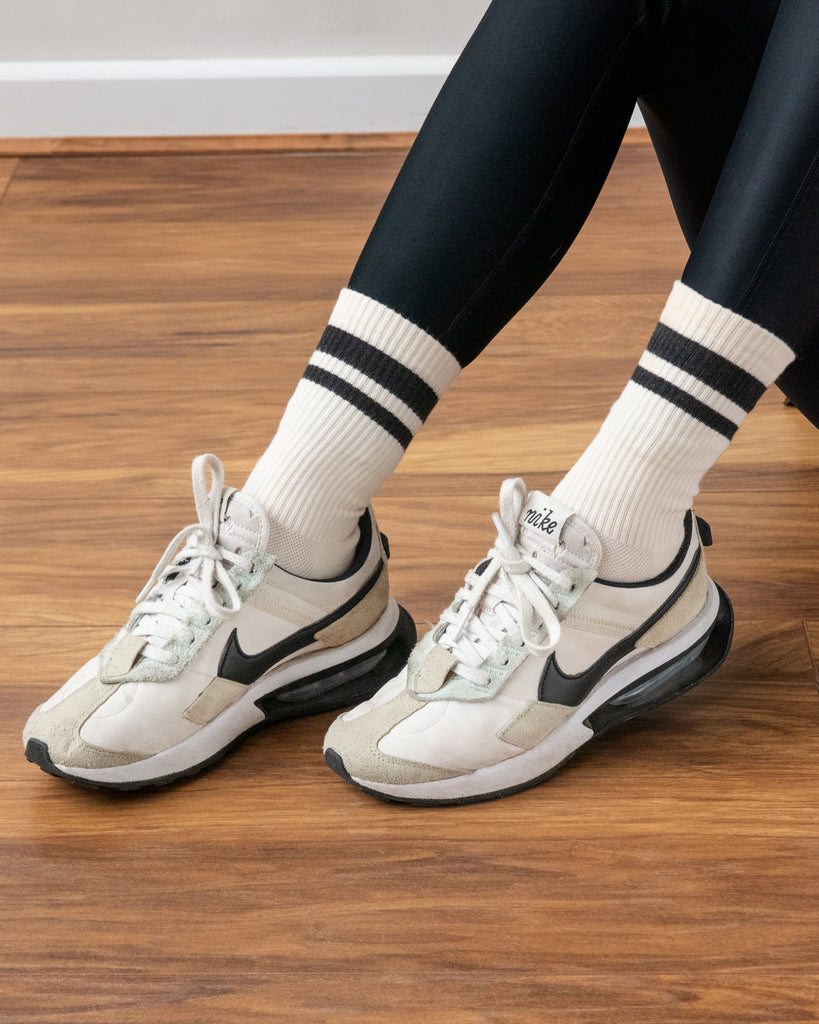 Luxe Cotton Sports Socks Ecru & Black