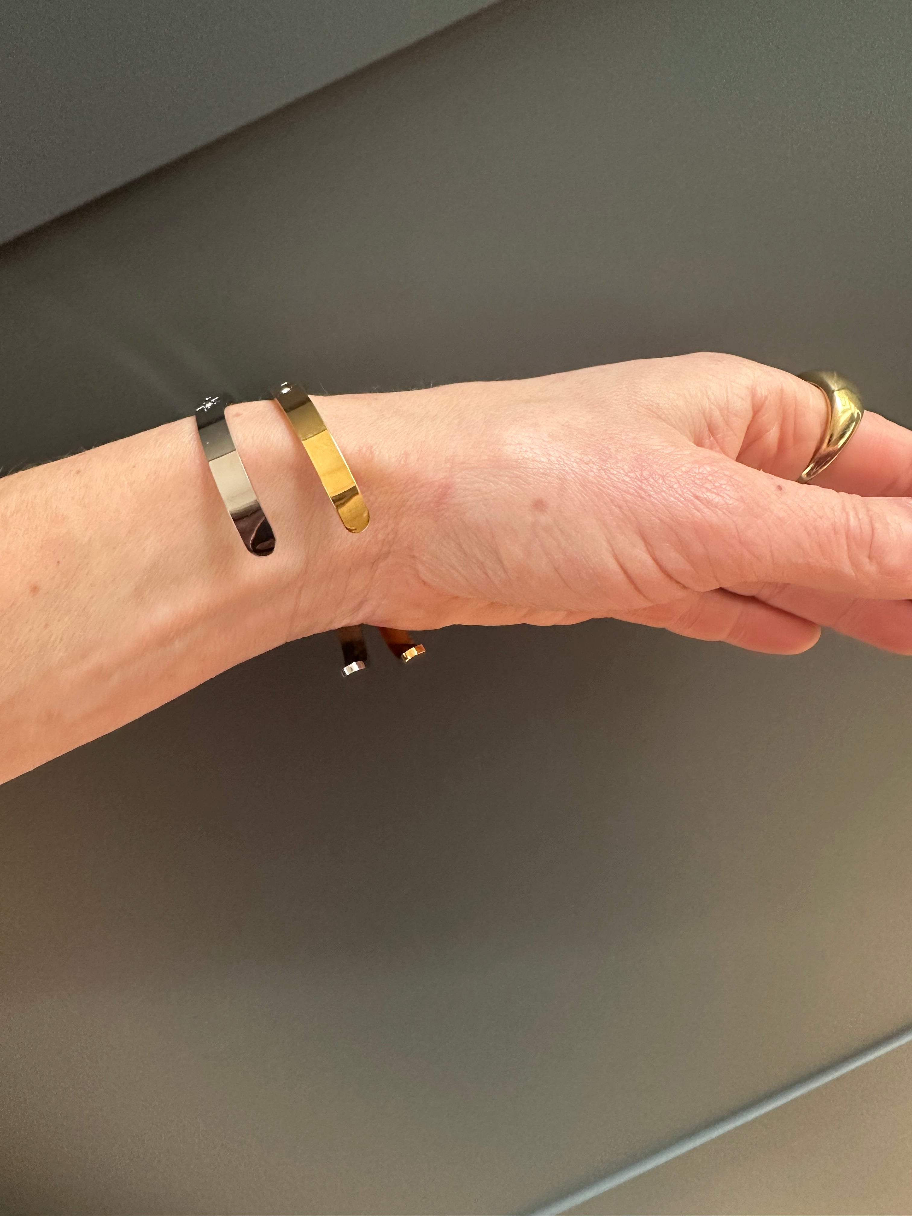 New in for Spring 26 bangles! We love these slim subtle bangles and will be stacking ours with our colourful bracelets forever more!