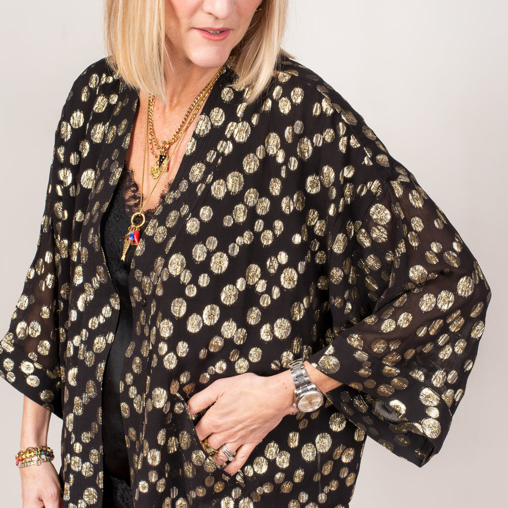 Adds effortless glamour to any outfit. Wear with what you already have this kimono is easy to style and wear. We love to wear ours with a cami top and jeans or over our favourite black dress. Also great for Summer evenings.