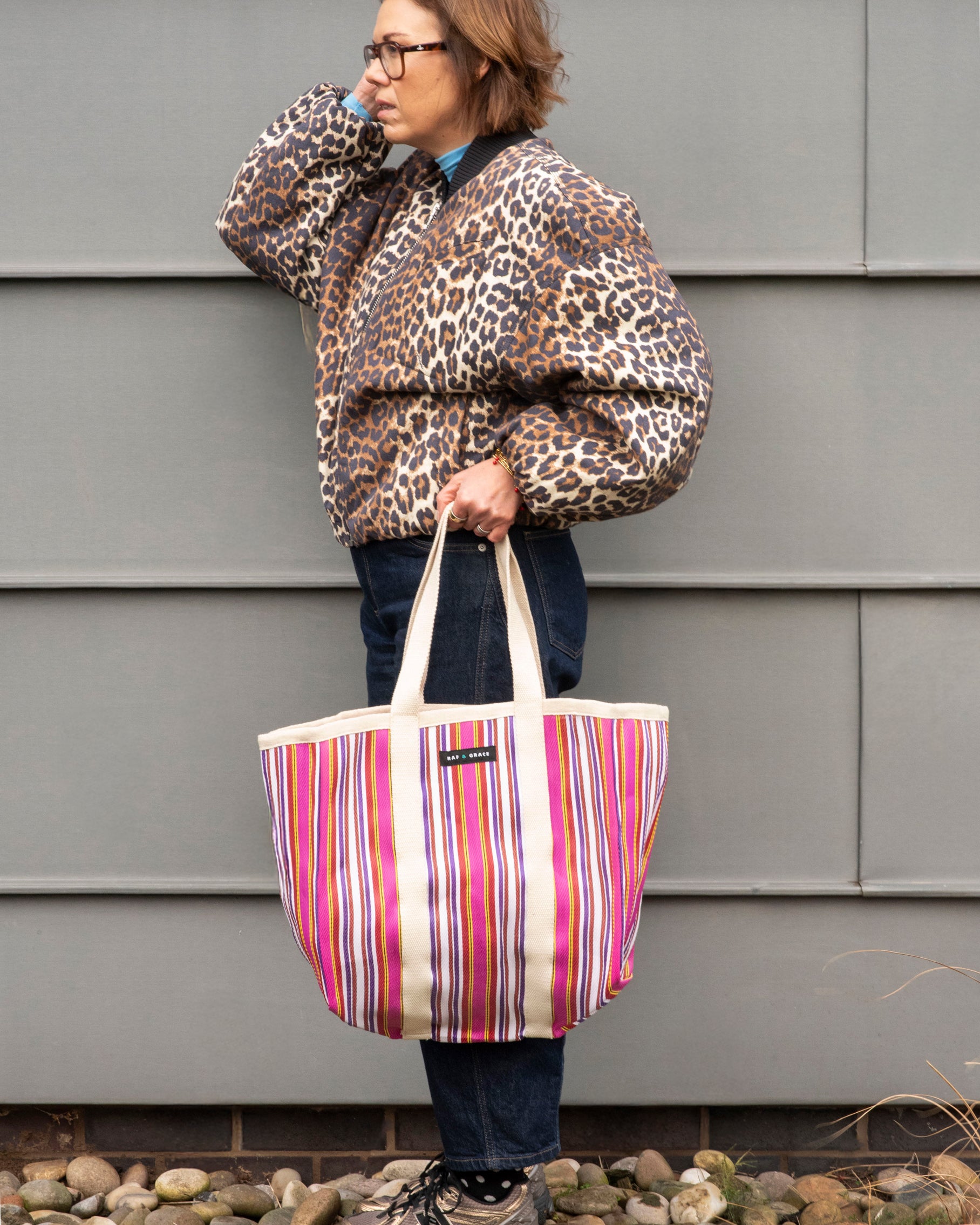 Large Recycled Plastic Pink & Red Stripe Shopper
