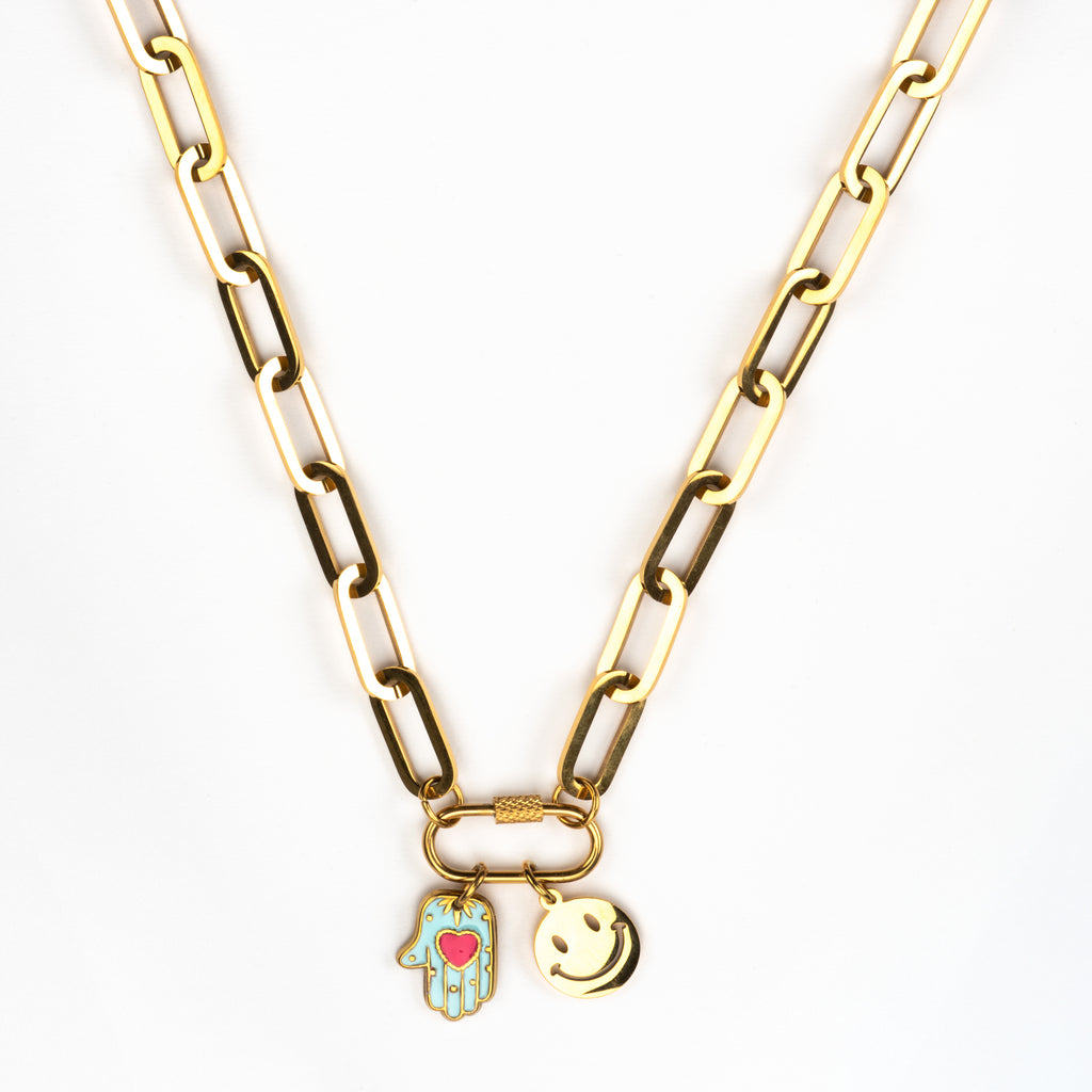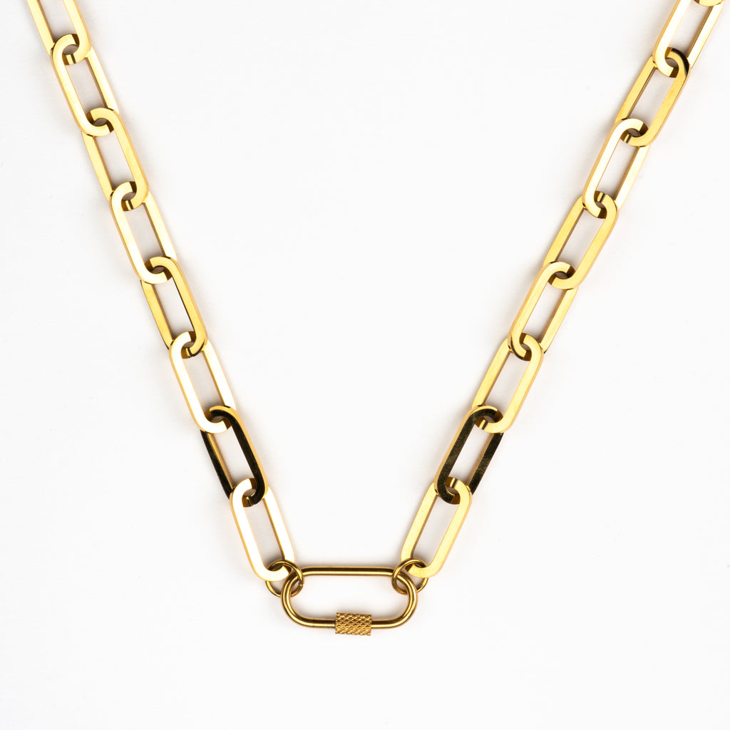 Chunky Gold Plated Carabiner Clip Charm Necklace