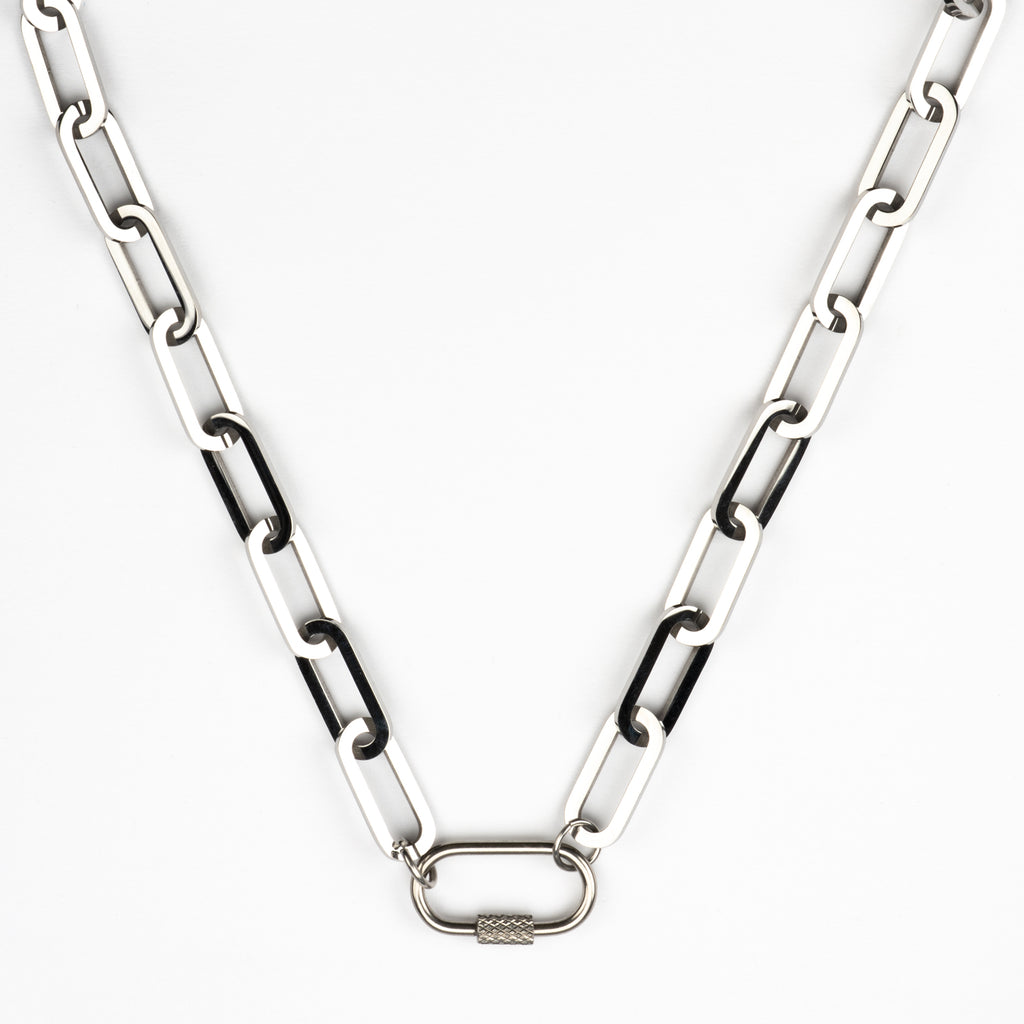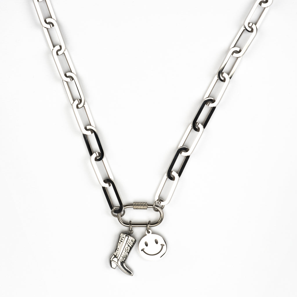 Two Charm Pre Stacked Chunky Silver Carabiner Clip Necklace