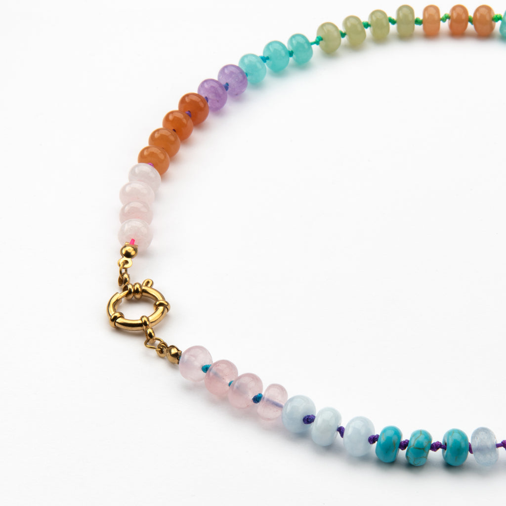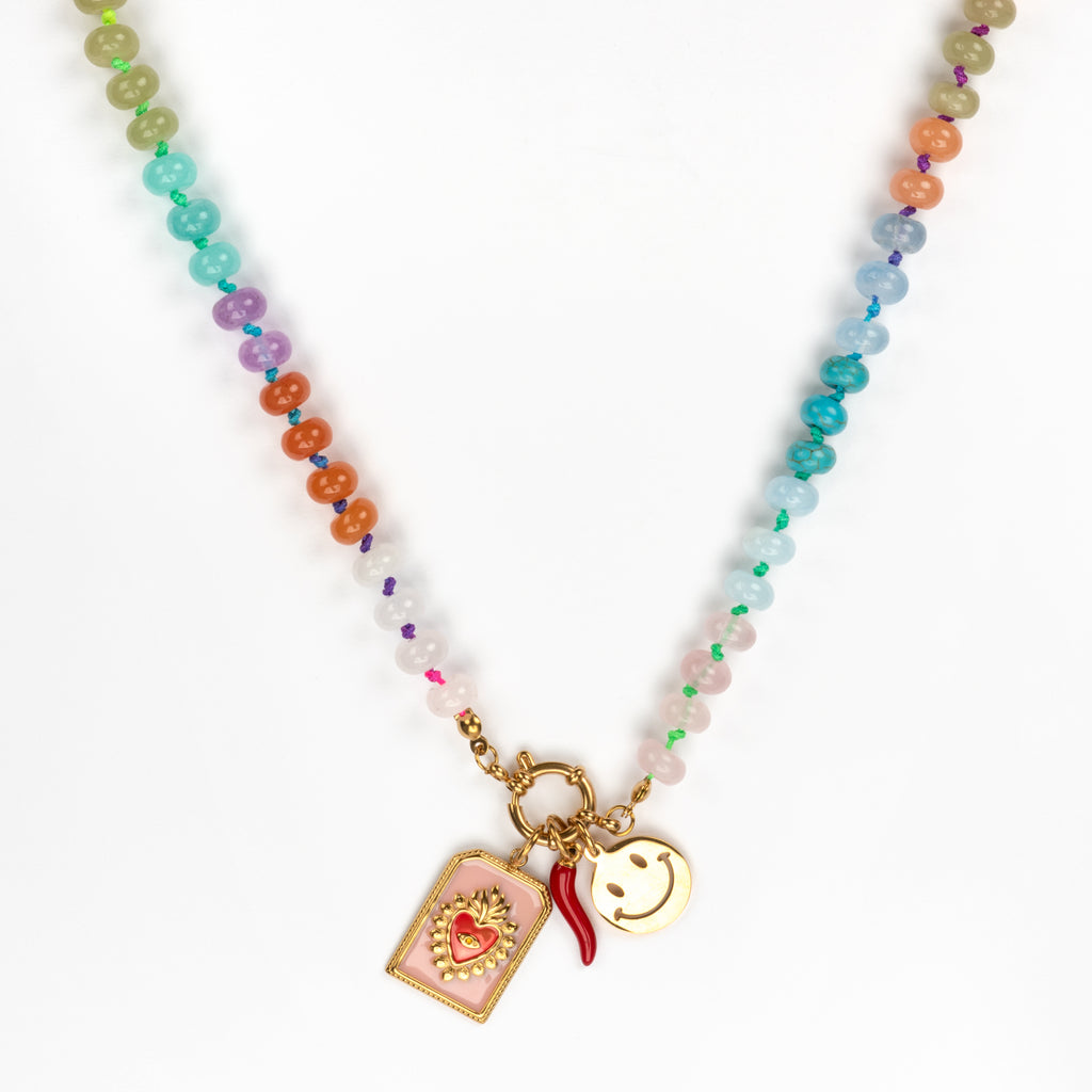 Three Charm Stacked Multi Rainbow Candy Bead Necklace