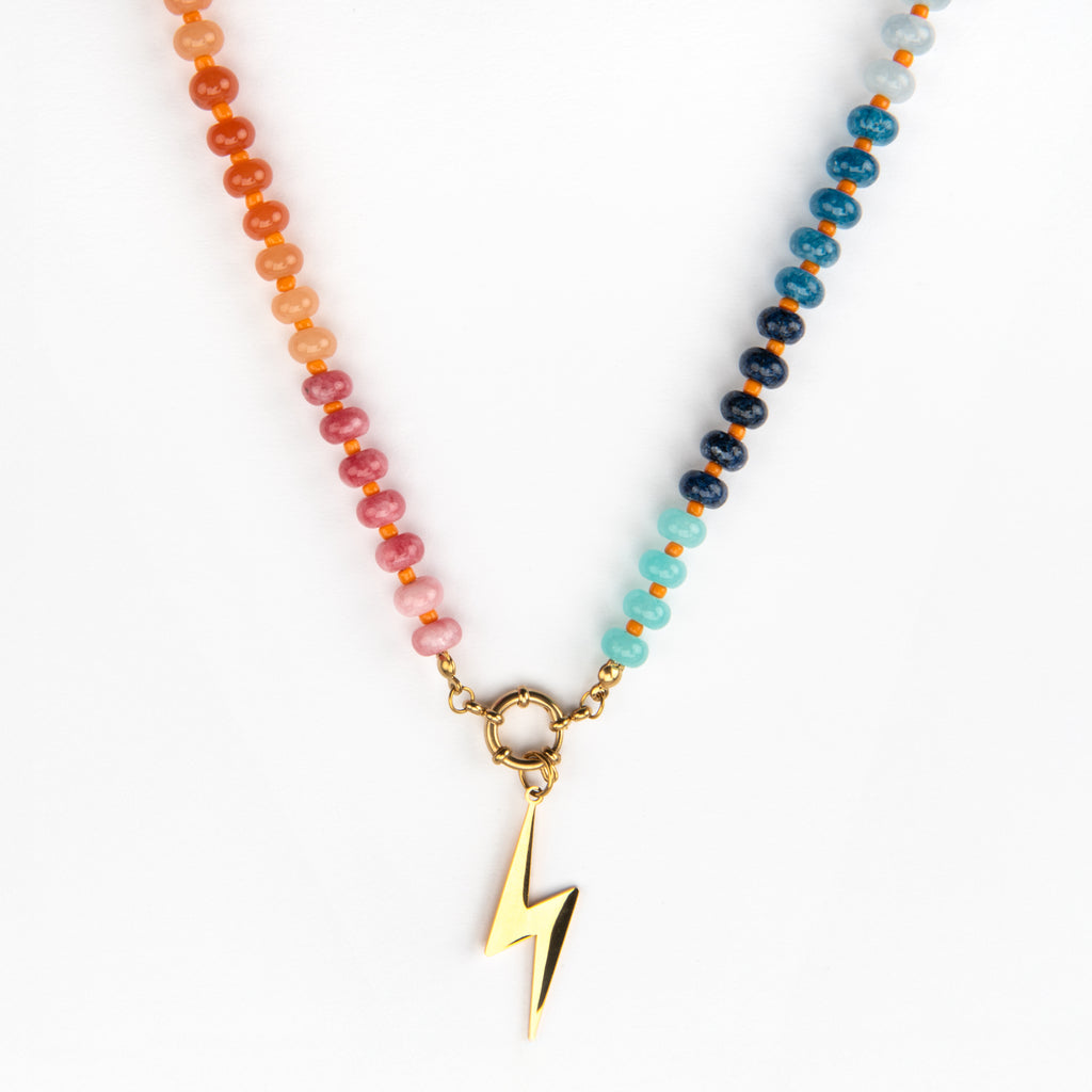Orange/Pink/Blue Candy Bead Lightning Bolt Necklace