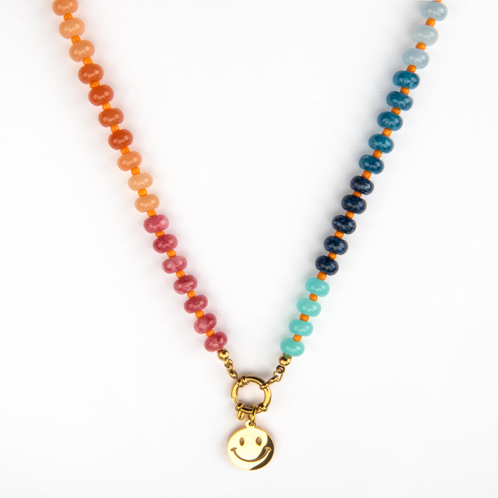 Orange/Pink/Blue Candy Bead Smile Necklace