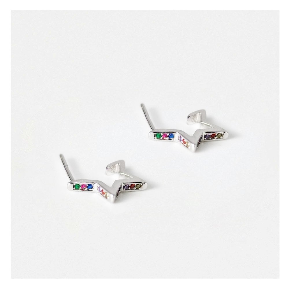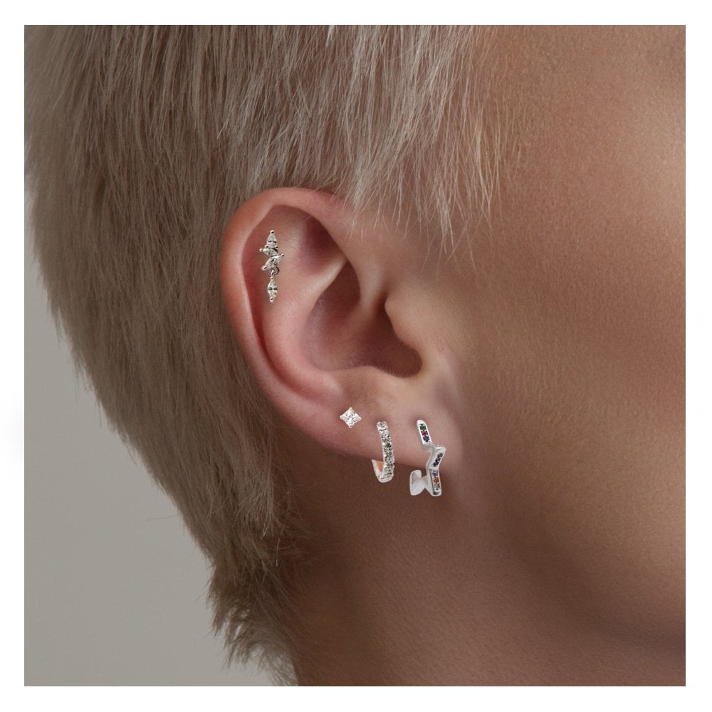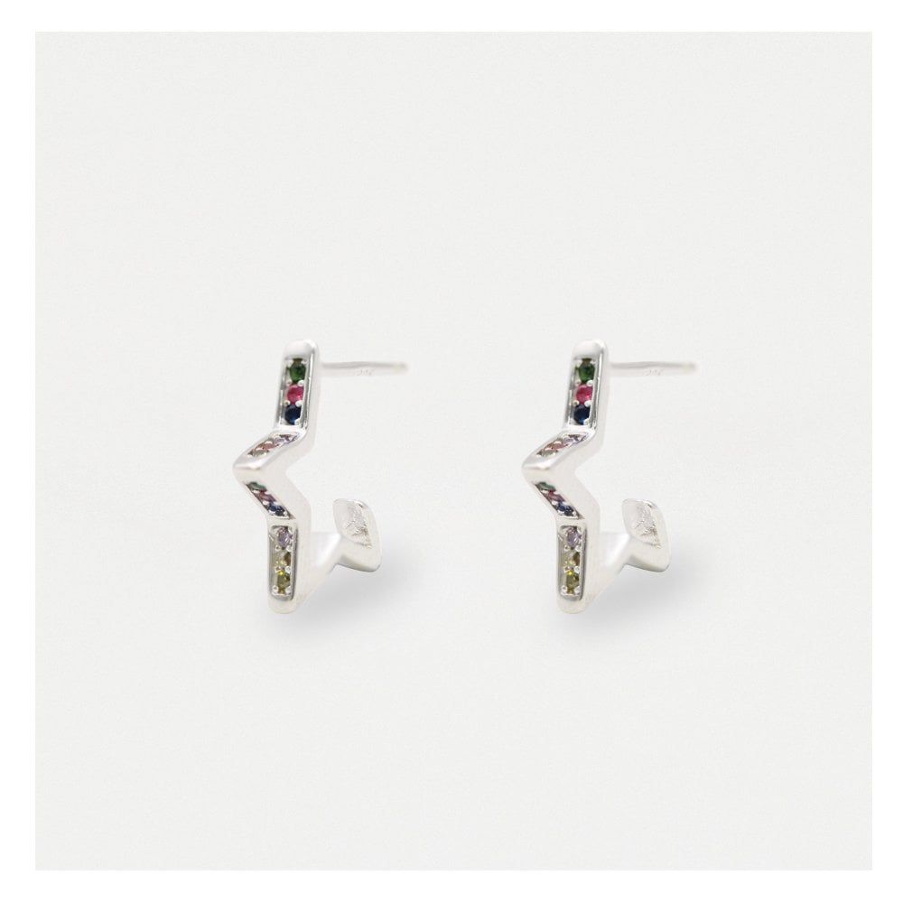 These star shaped hoop earrings are adorned with a symphony of tiny, multi-coloured crystals. The hoops have a square edge finish and ideal for wearing in a lobe piercing together with other hoops or ear studs.