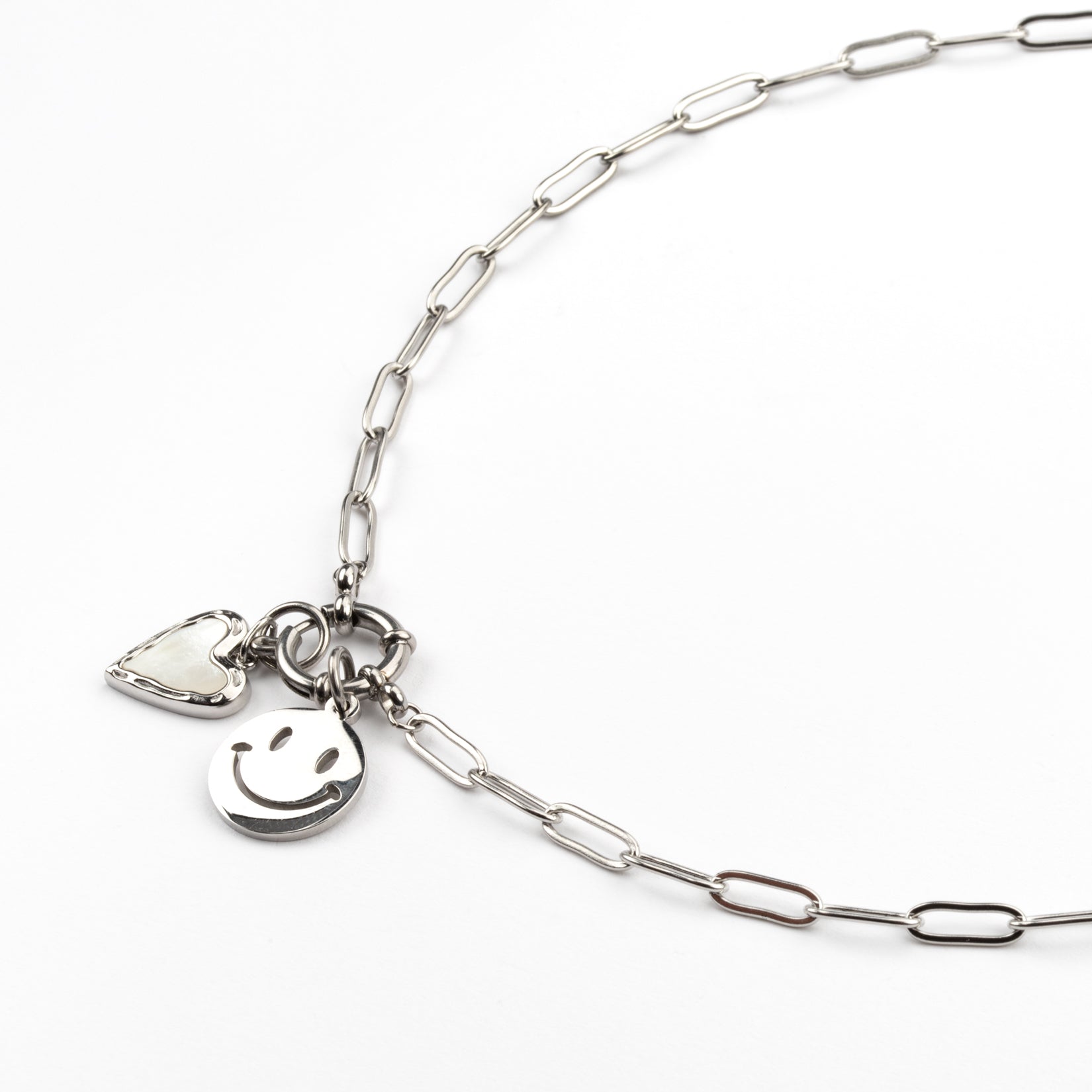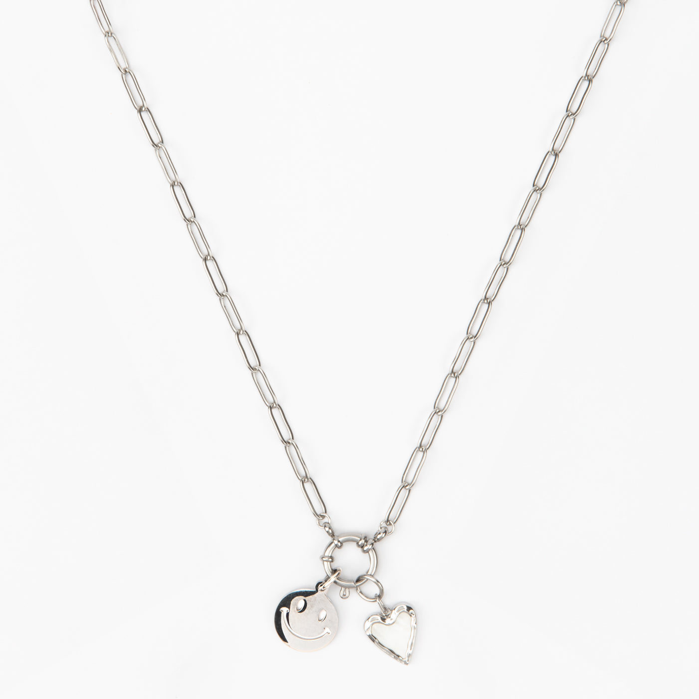 Two Charm Heart & Smile Stacked Silver Betsy Necklace