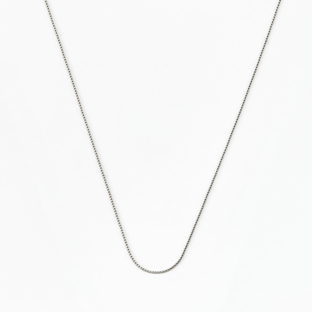 This retro 'square pearl' style chain link necklace which is 3mm wide, made with stainless steel. Necklace is longer length than our other chains perfect for stacking and measures 60cm. This chain requires one of our connector clips purchasing along with the charms to connect them to the necklace as shown in the images. We can add them to the chain without a connector clip but they will be fixed.