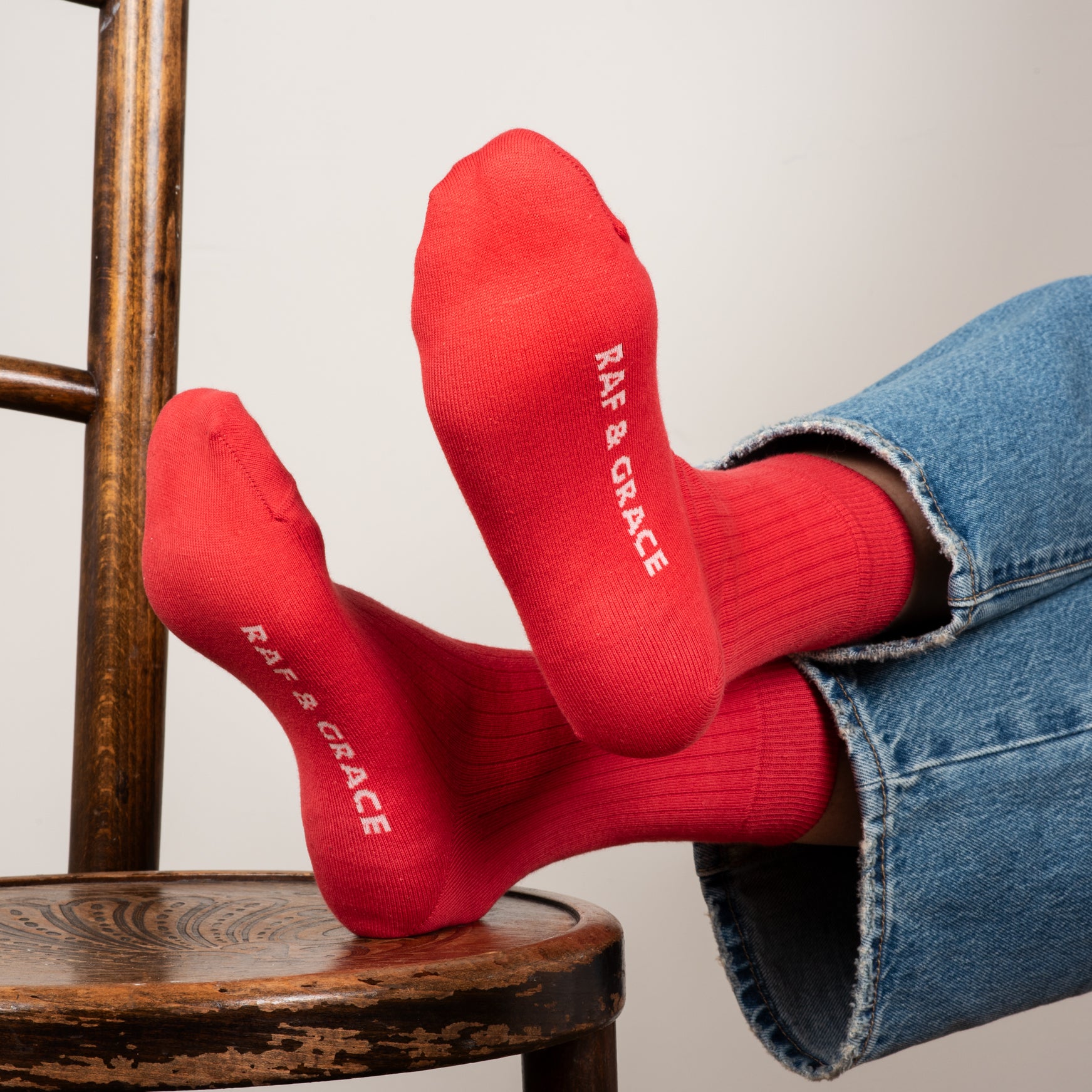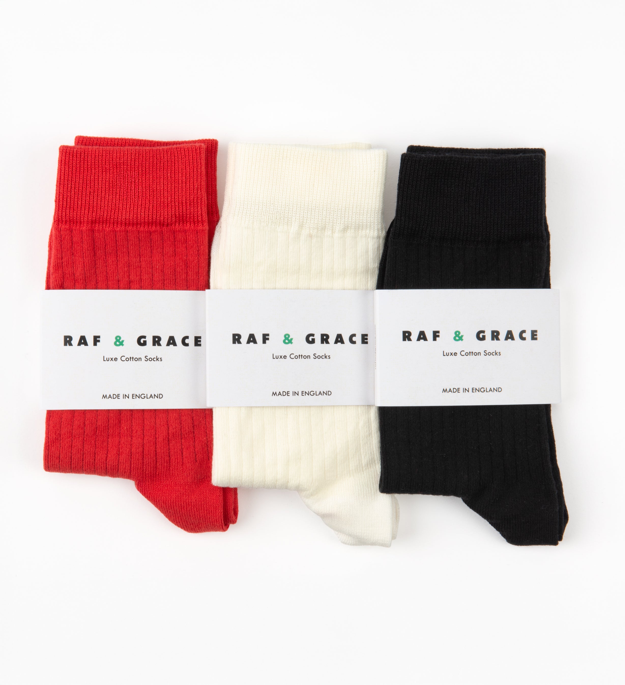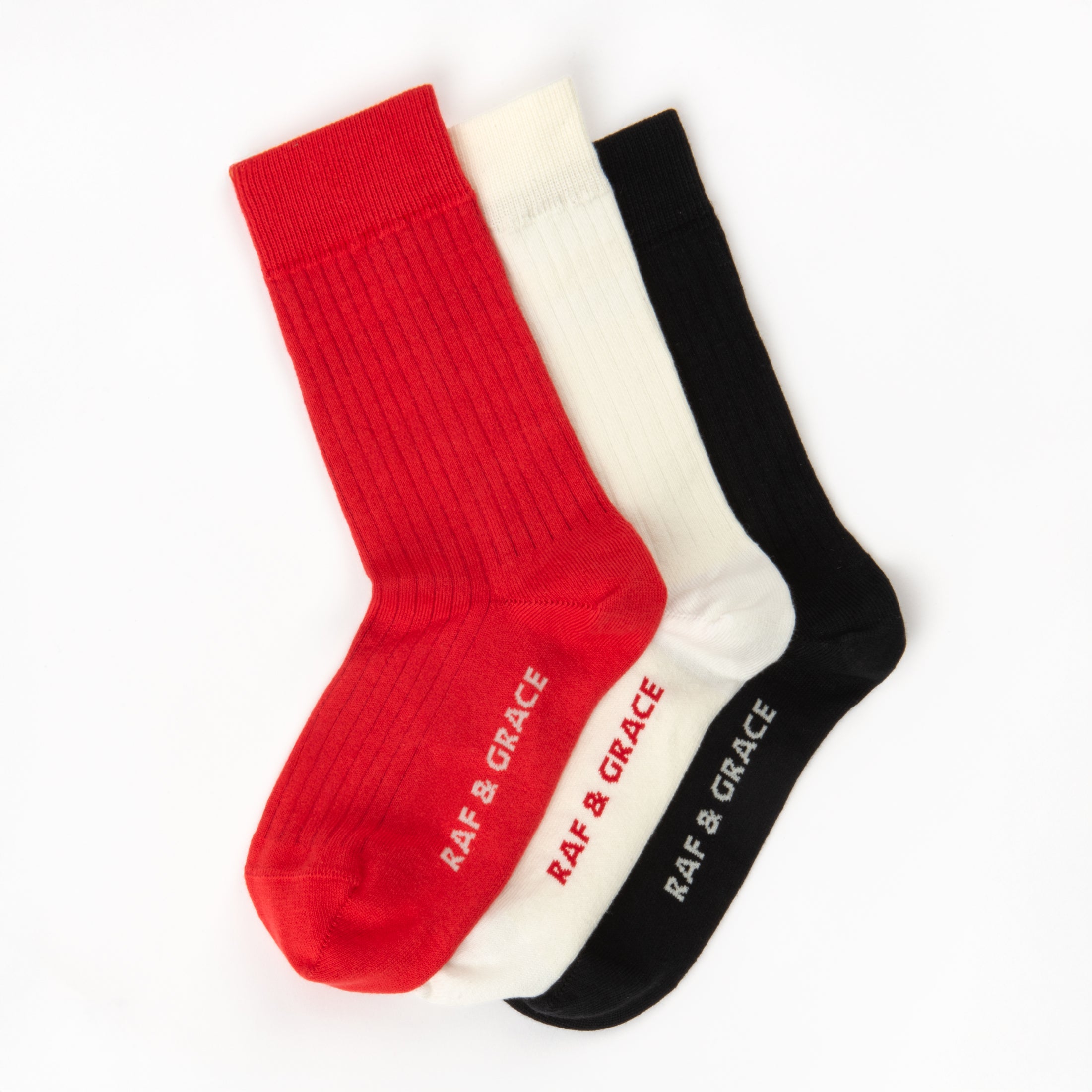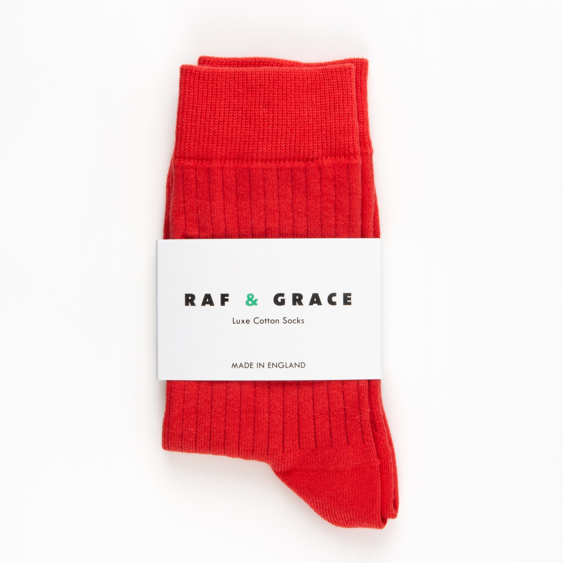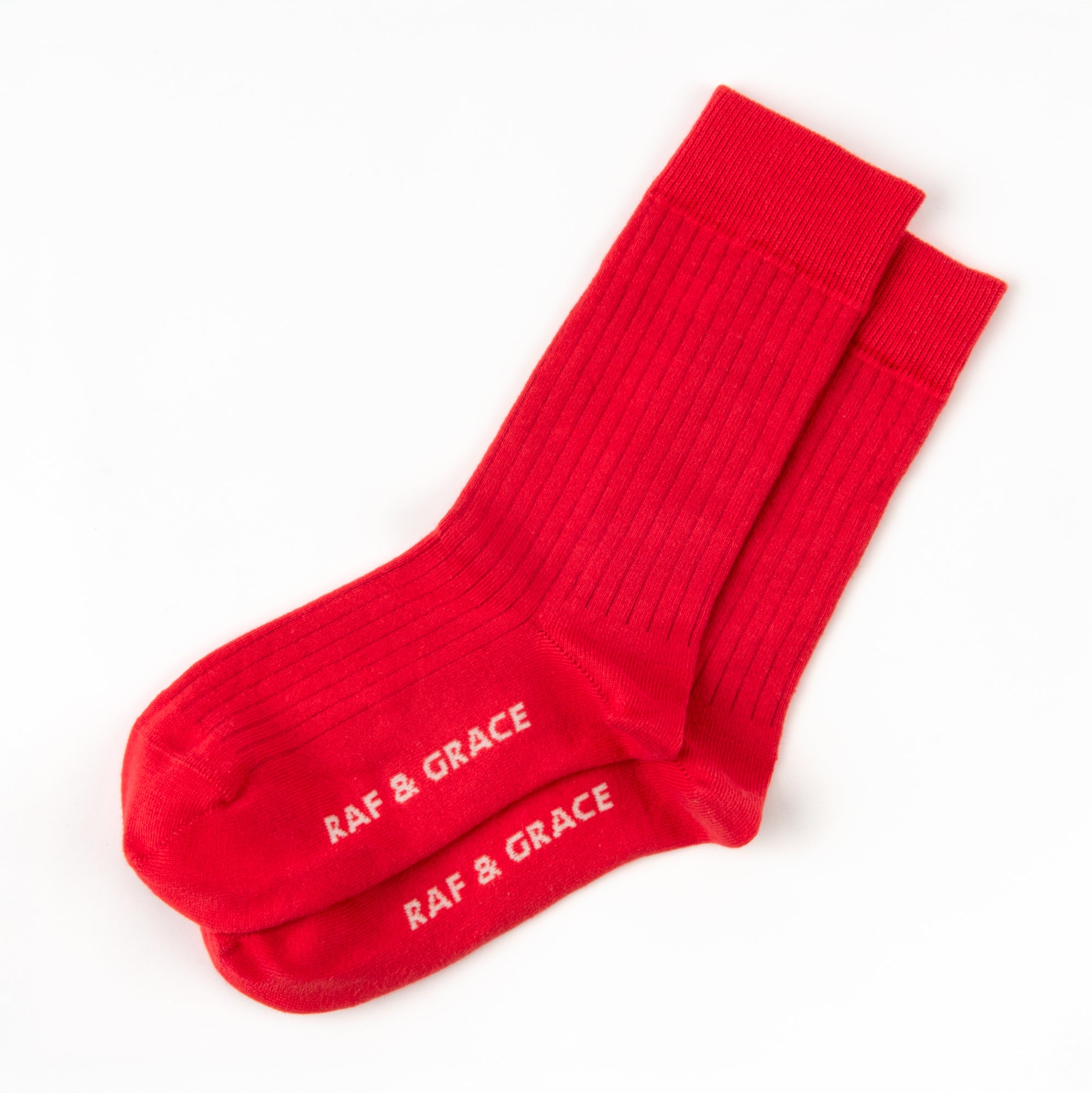 Crafted in England with luxe combed cotton. These ribbed cotton socks will bring everyday comfort with a touch of luxury and refinement. Ribbed cotton socks in the most perfect red with Raf & Grace branding in the footbed.