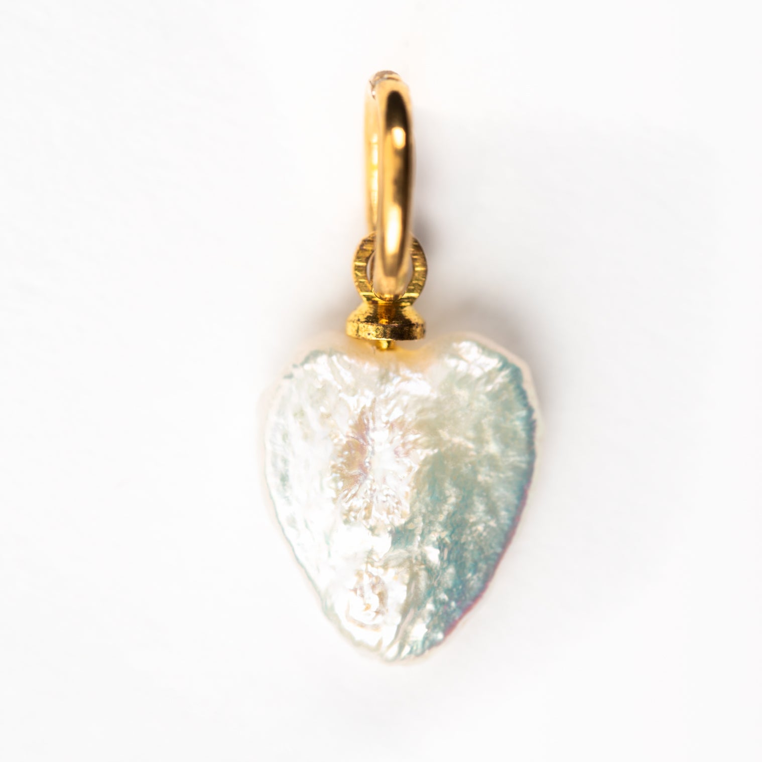Adding to our best selling charms collection with this cute pearl effect heart shaped mini charm. The perfect pop of cuteness to any necklace! Measures 1.2cm by 1.2cm.