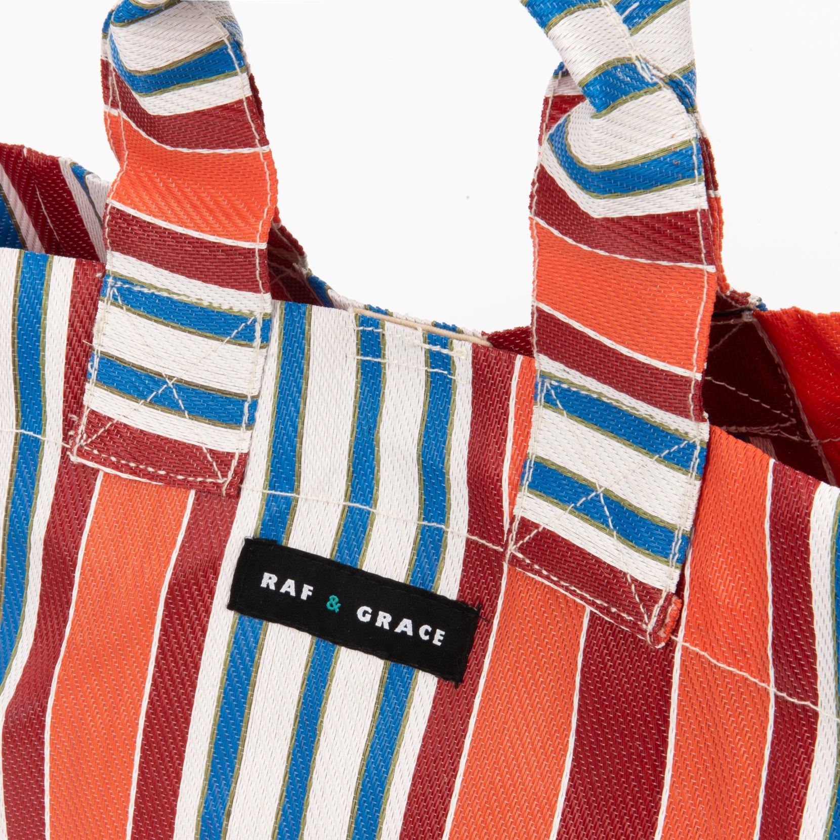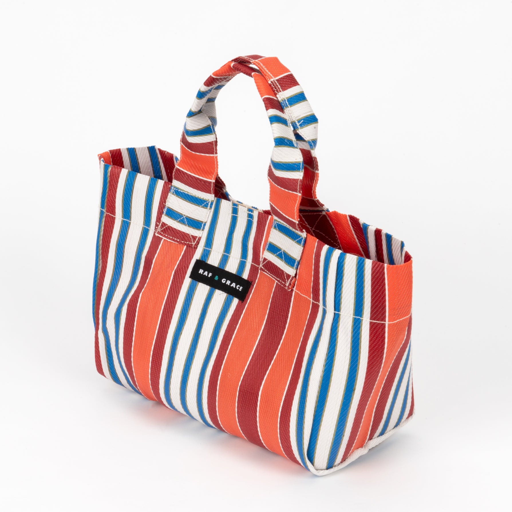 Recycled Plastic Orange & Red Striped Micro Shopper Bag