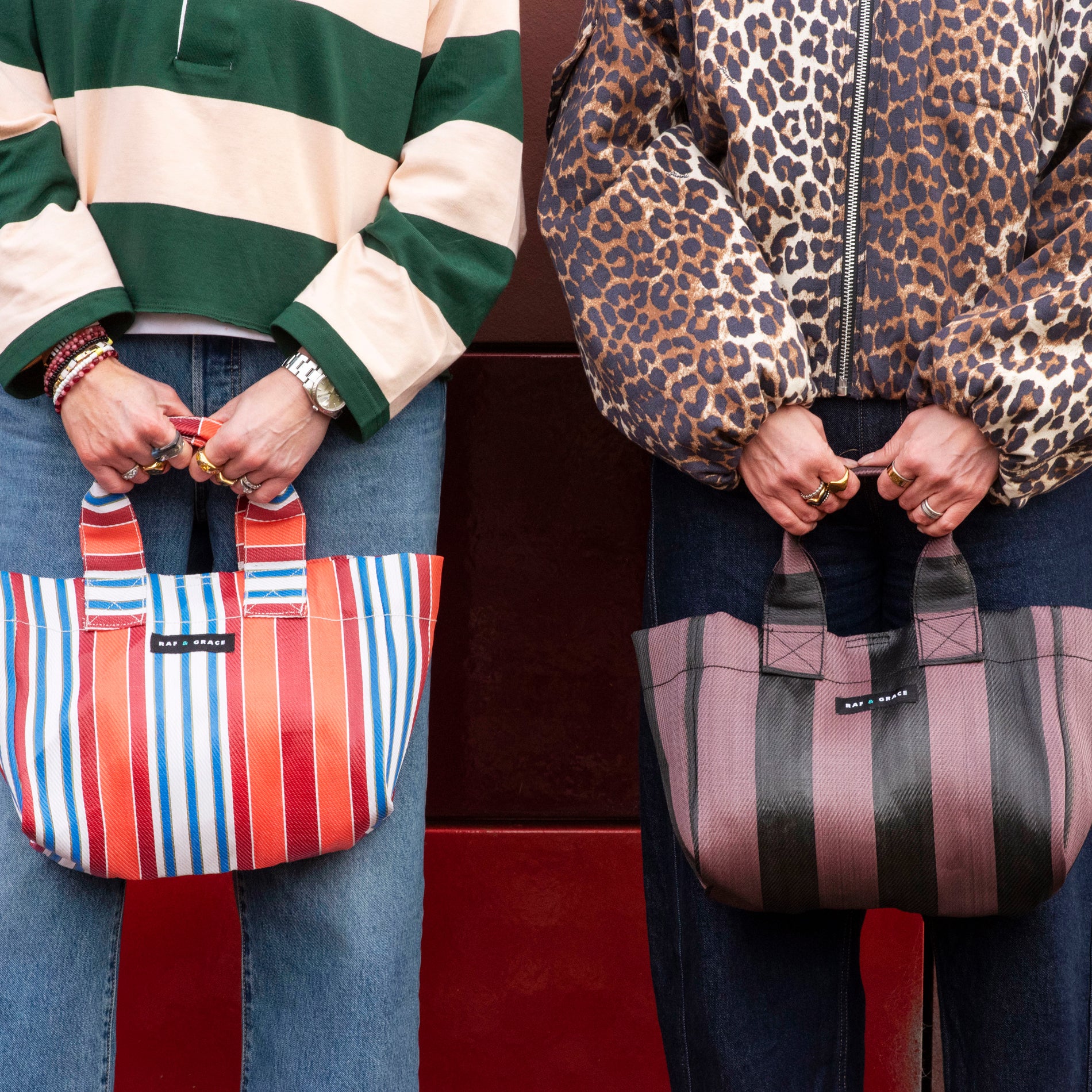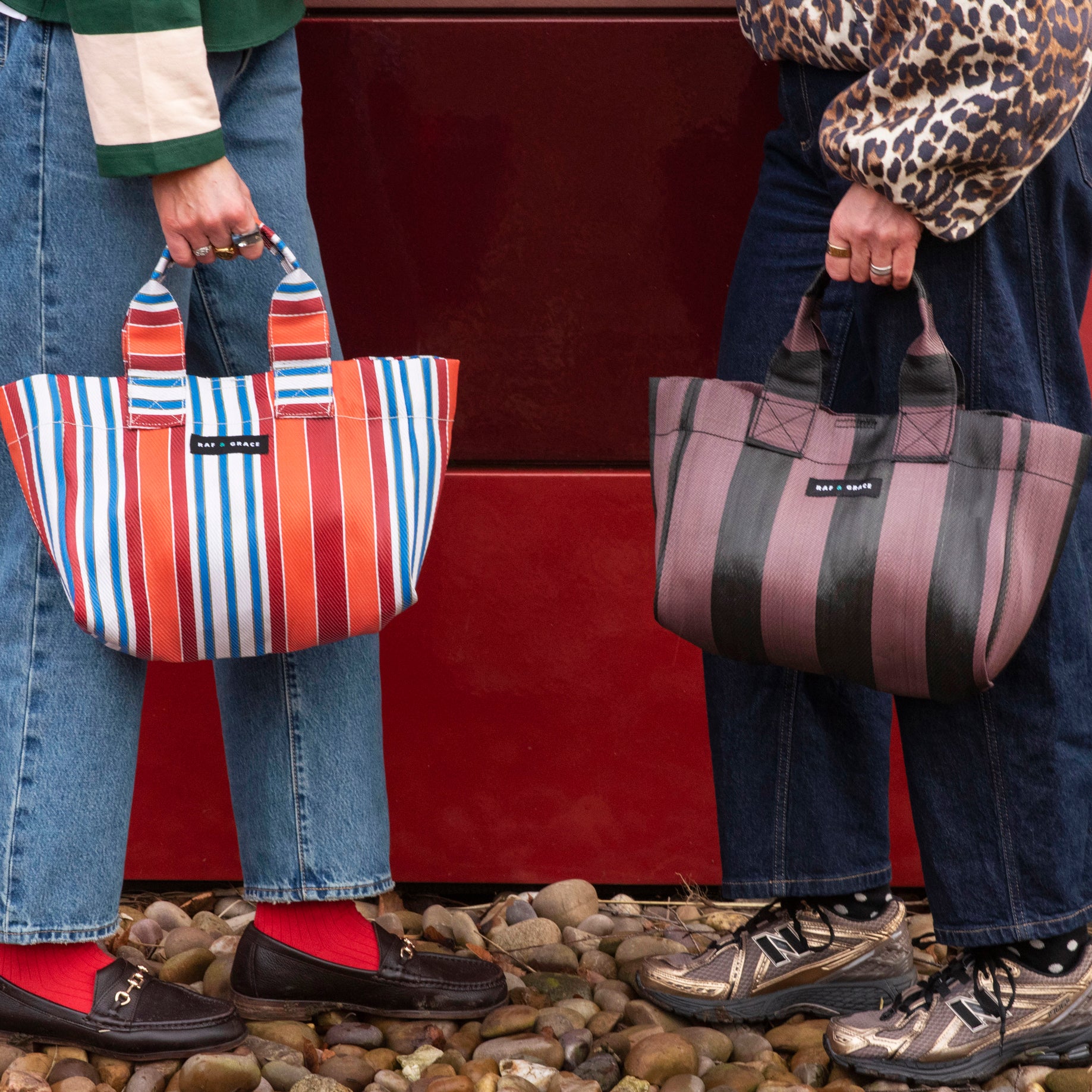 New in for Spring 26! Our latest addition to our accessories range. The new micro shopper! This Orange and red striped micro shopper bag made from recycled plastic.