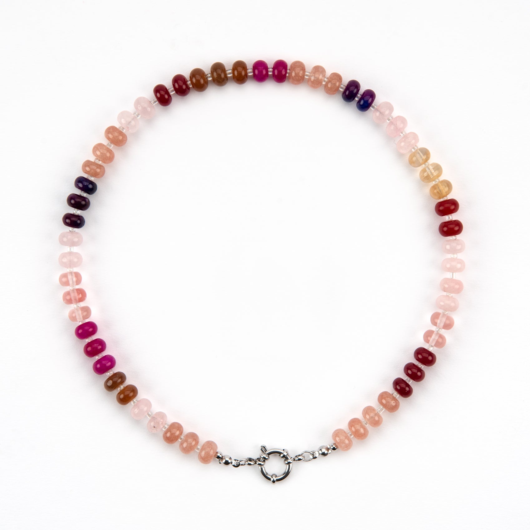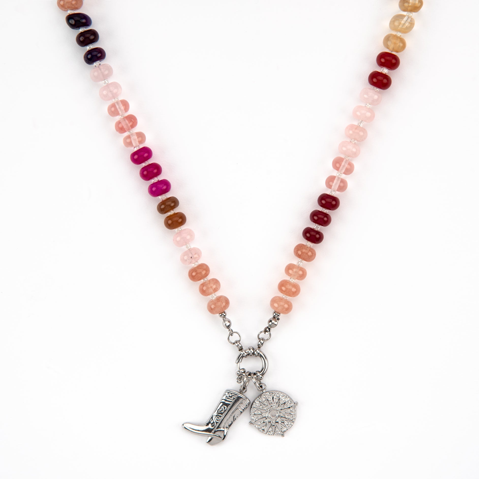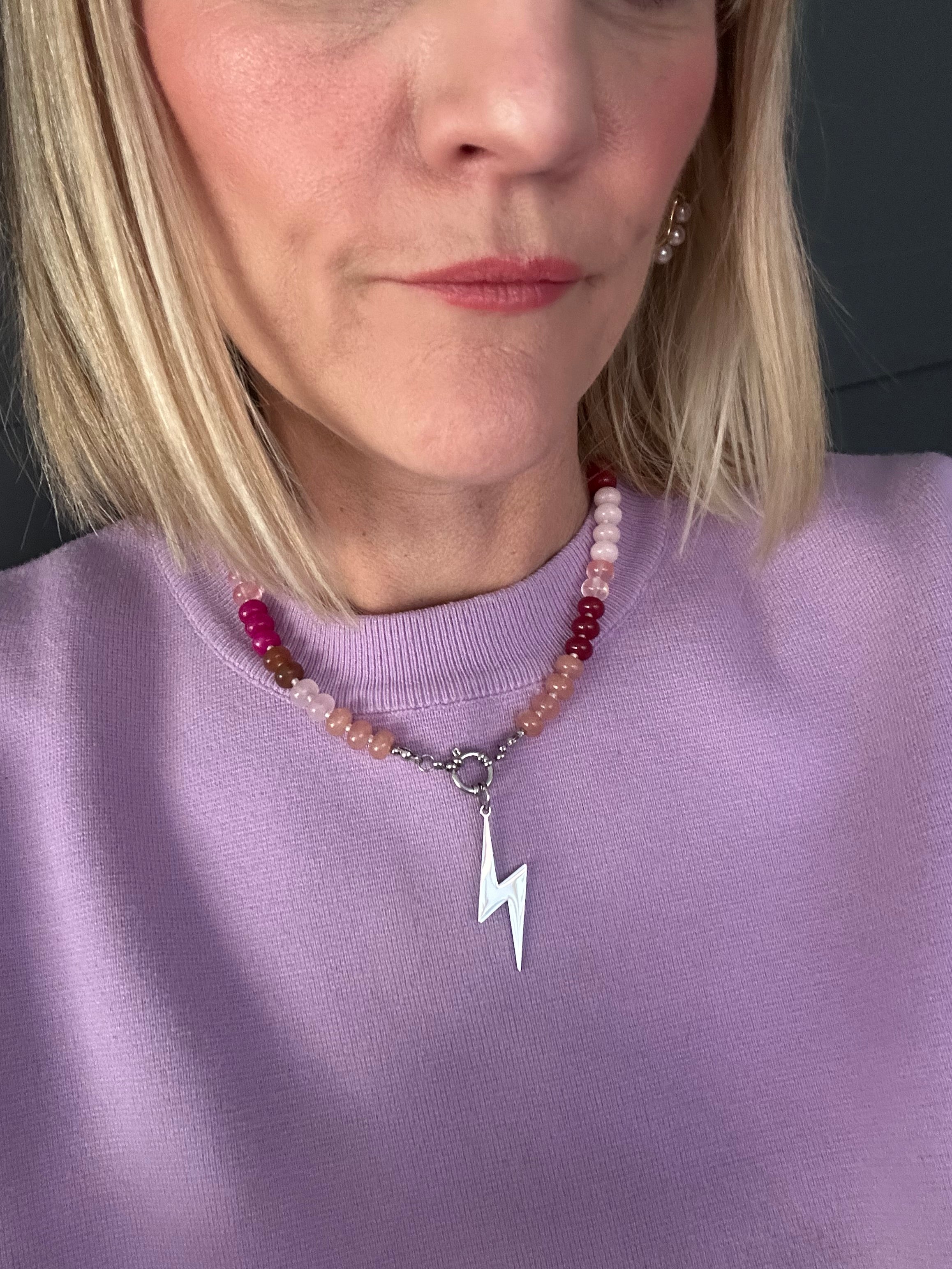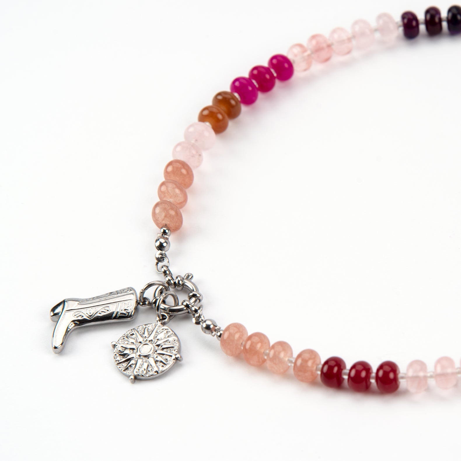 Meet our newest candy bead necklace, in our fave colour combination colours Summer berry tones of pink and red! with a central stainless steel clasp that you can add your choice of charms to.
