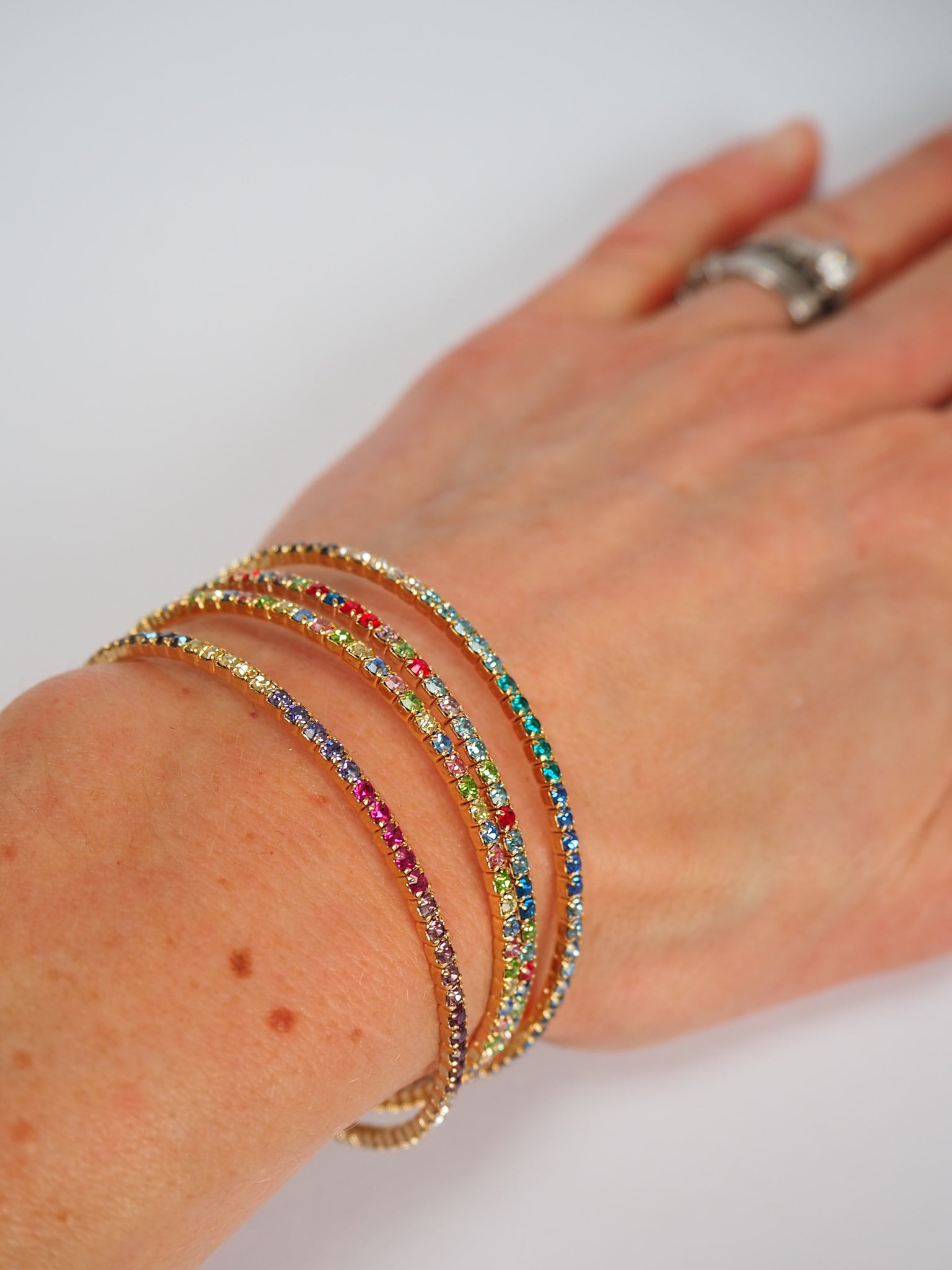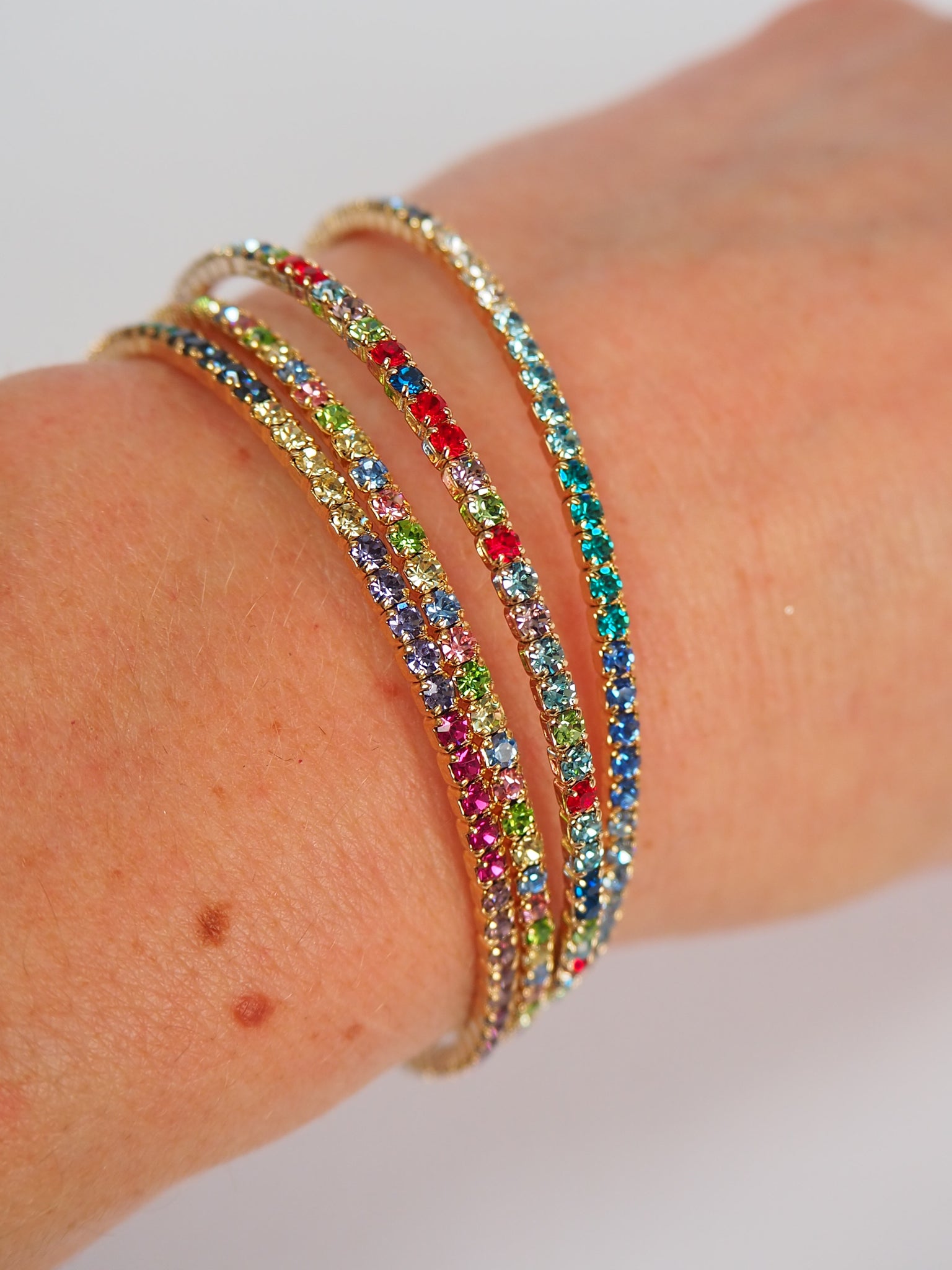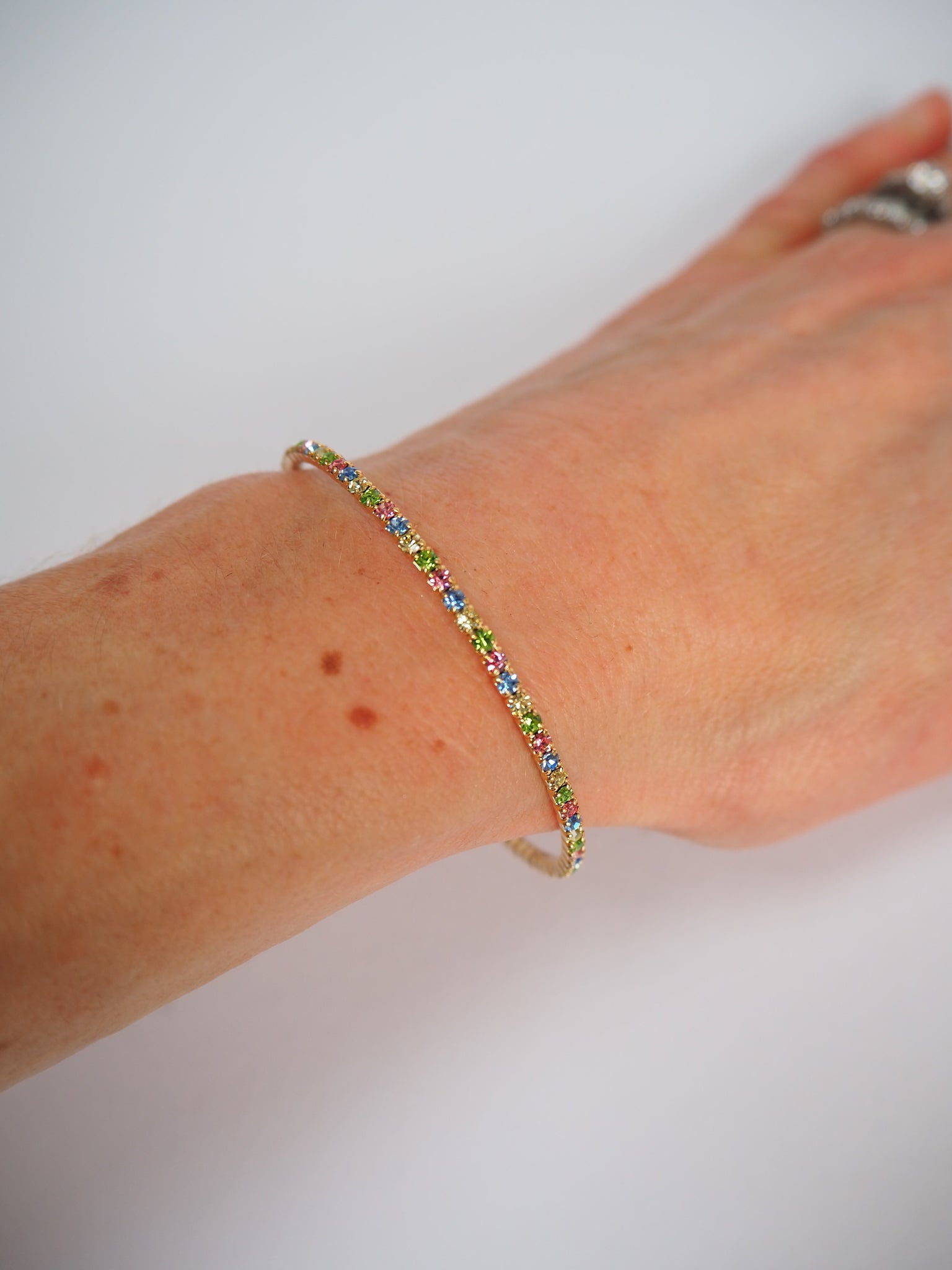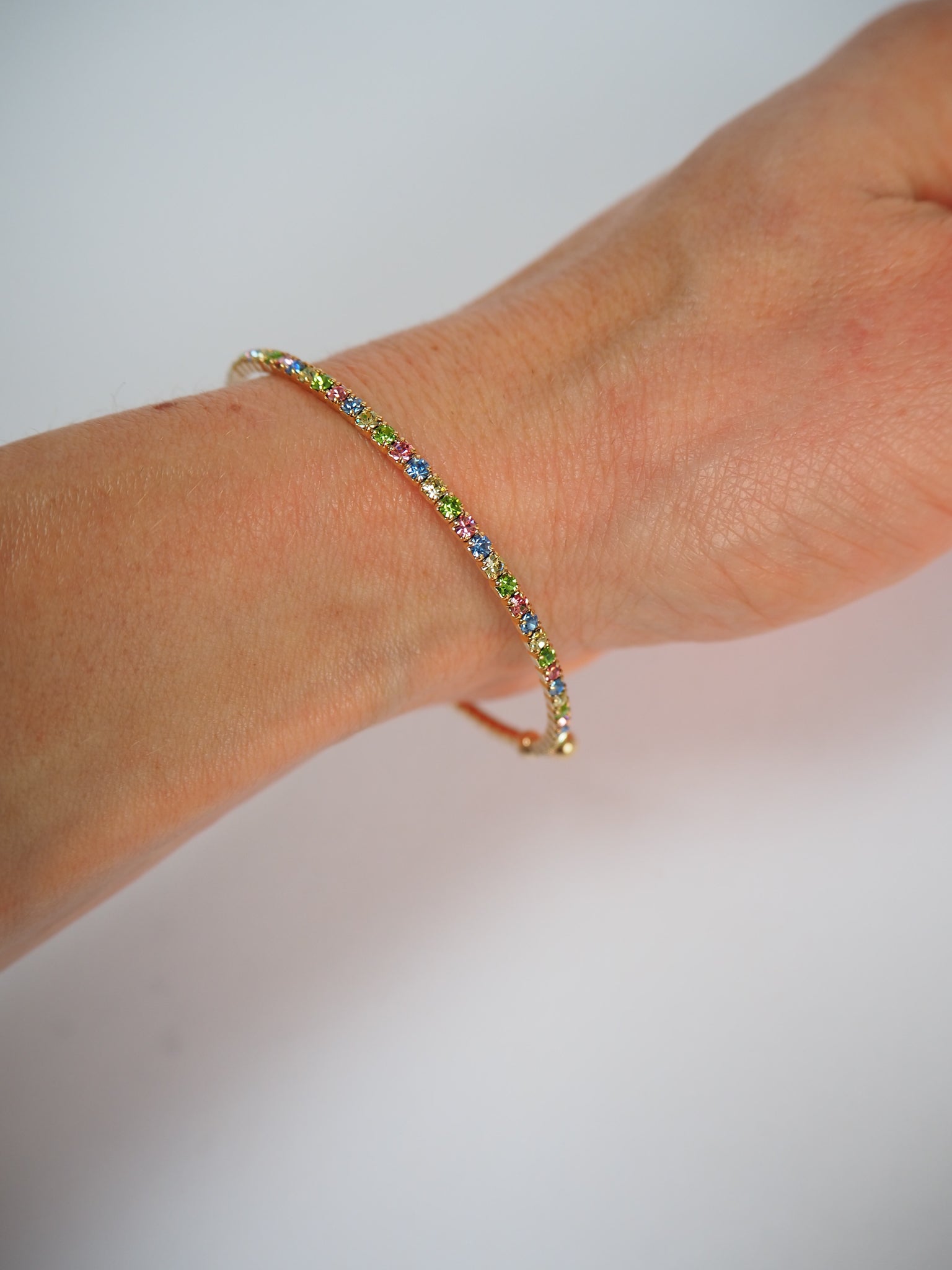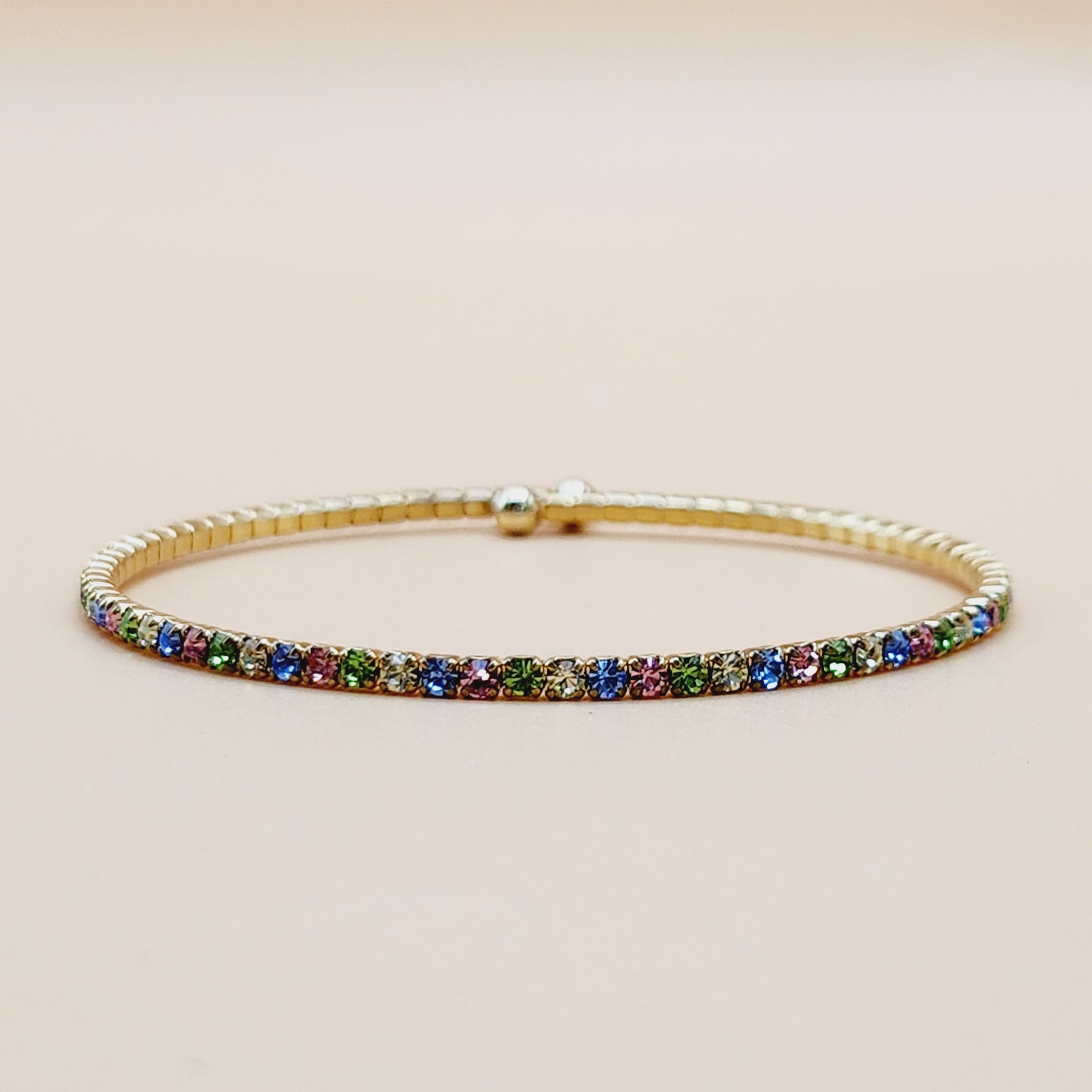 Slim Crystal Pastel Rainbow Gold Bracelet